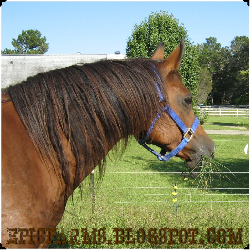 I did, however, look up coughs in horses the following spring when she started coughing; again here and there (just in case). Although I came across heaves as a potential cause for cough, she did not have any breathing troubles or mucous and the coughs seemed to be pretty mild as well as few and far between. Added to that, my "go to" books and online haunts all pointed to stabling and dusty hay as the cause of heaves and advised keeping the horse on turnout and grass. Since Sara isn't stabled at all (although she has shelter) and pretty much never eats from the hay pile, I mentally crossed it off. Over the past week or two, I've found several online articles about heaves in the South in turned out horses. Hello? Where the heck was all this important stuff when I looked the first time? Well foo on you Mr. Highnmighty Net; NOW you tell me. *scowl*